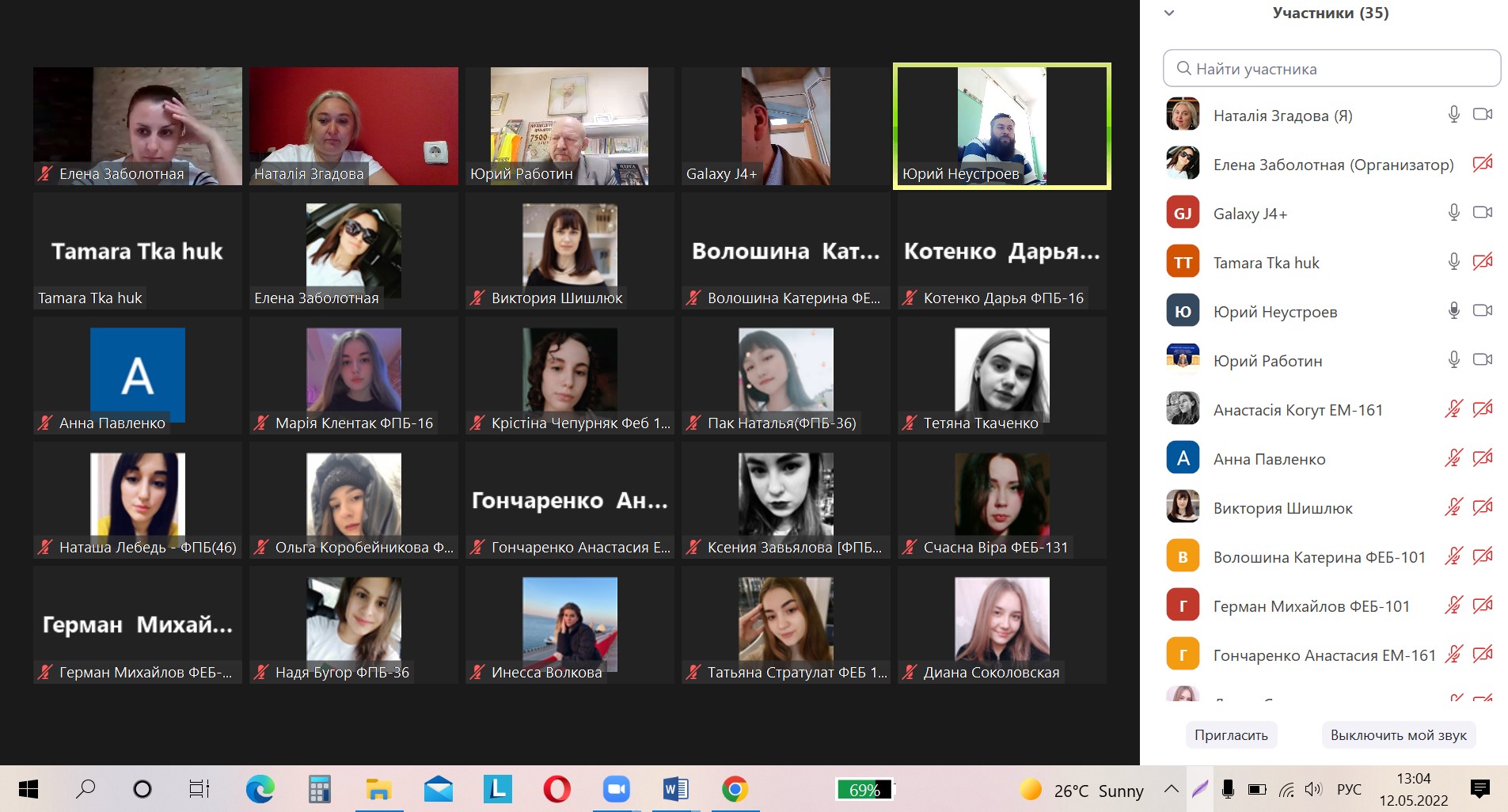На кафедрі Економічної теорії та фінансово – економічної безпеки 12.05.2022 року відбувся міжнародний круглий стіл «Актуальні проблеми та перспективи розвитку систем соціально-економічної безпеки в дослідженнях здобувачів вищої освіти ОНТУ». Голова – в. о. завідувача кафедри економічної теорії та фінансово-економічної безпеки к.е.н., доц.. Неустроєв Ю. Г., модератор – Заболотна О. С.